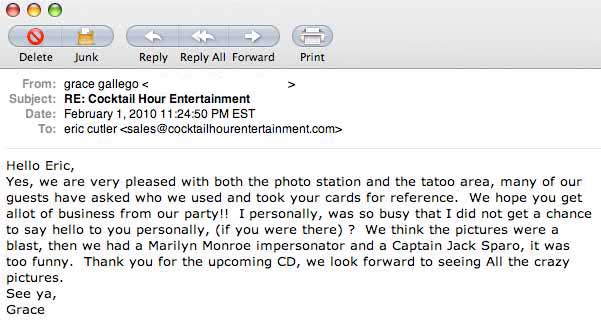 Client Letters for Cocktail Hour Entertainment